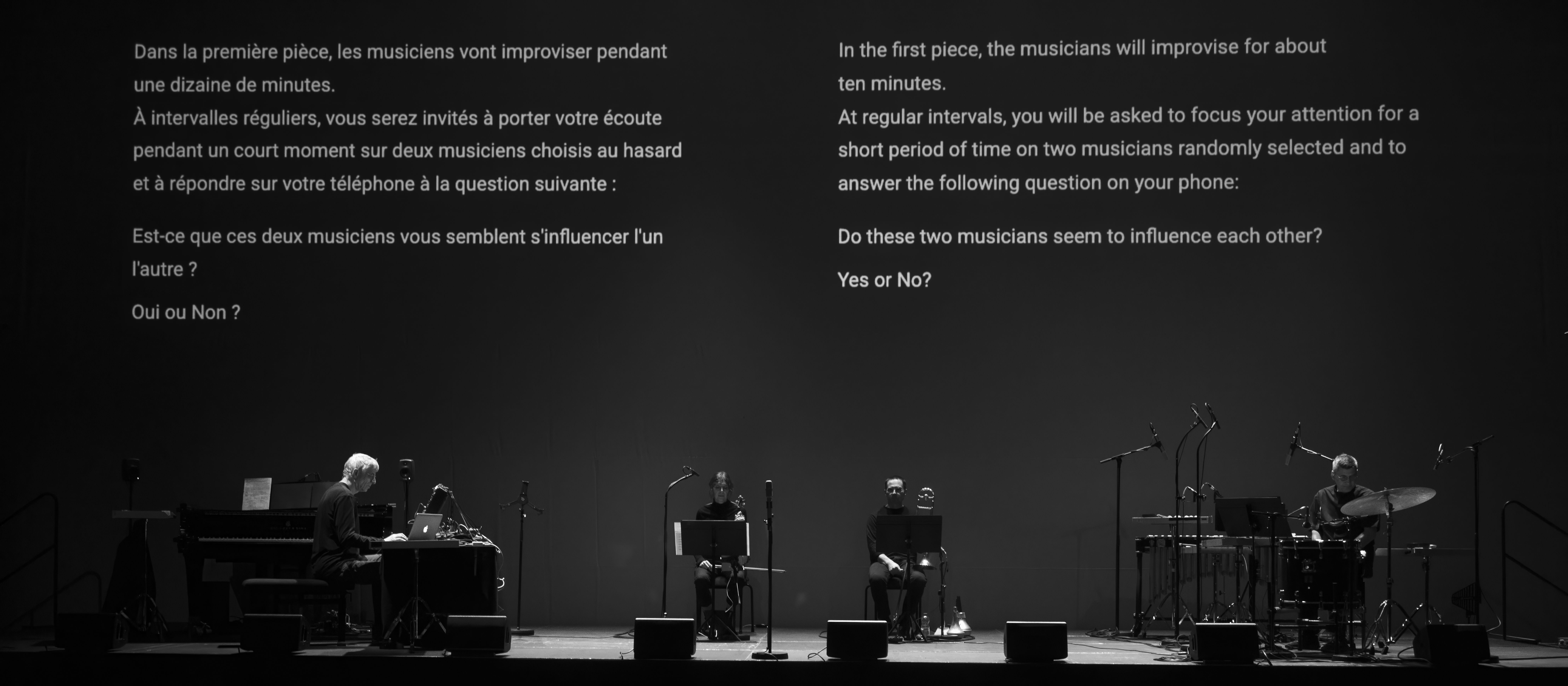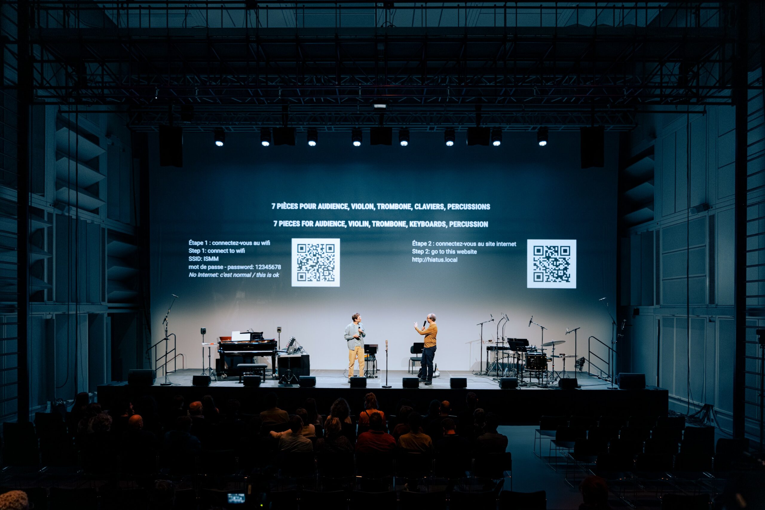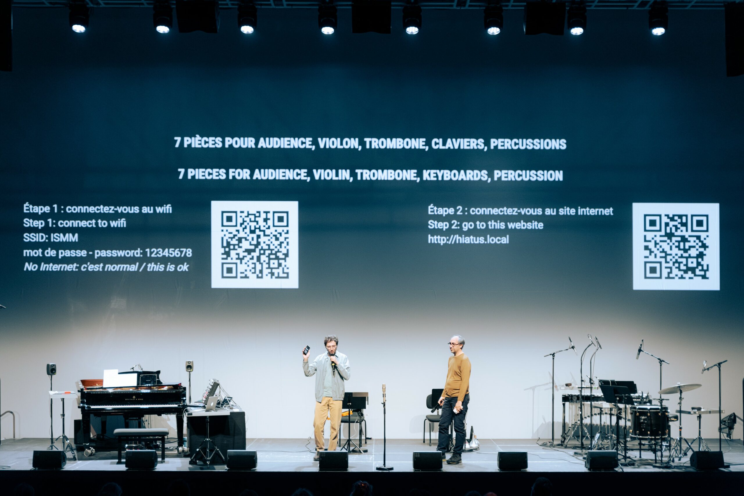 7 pièces pour audience, violon, trombone, claviers, percussions