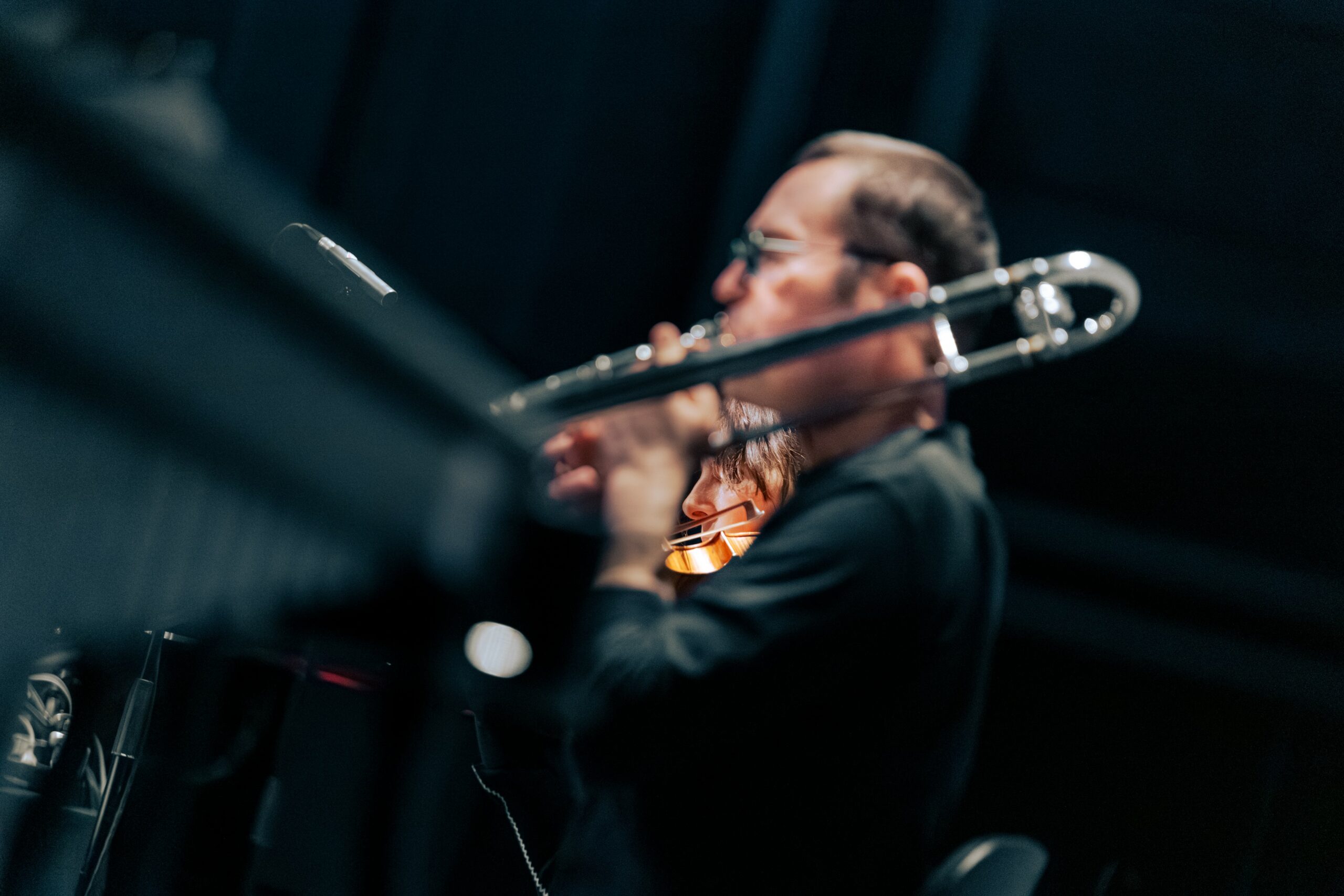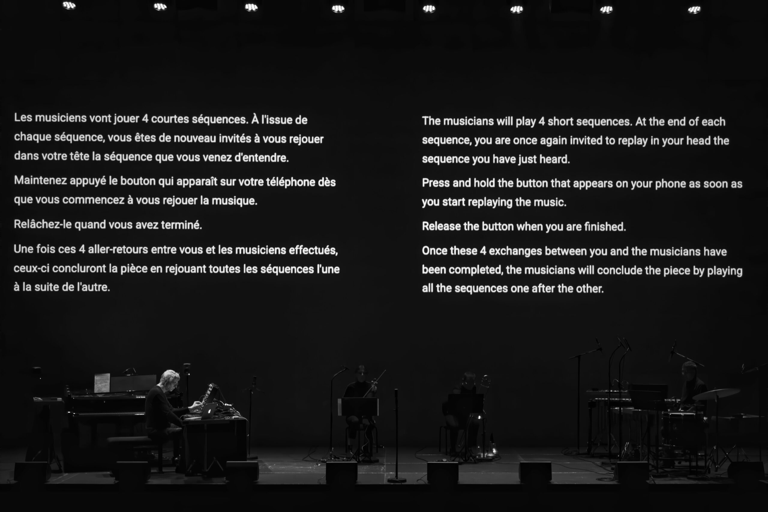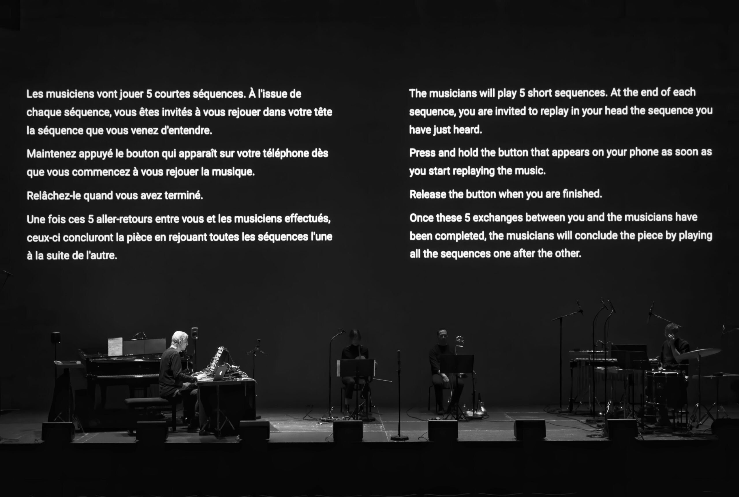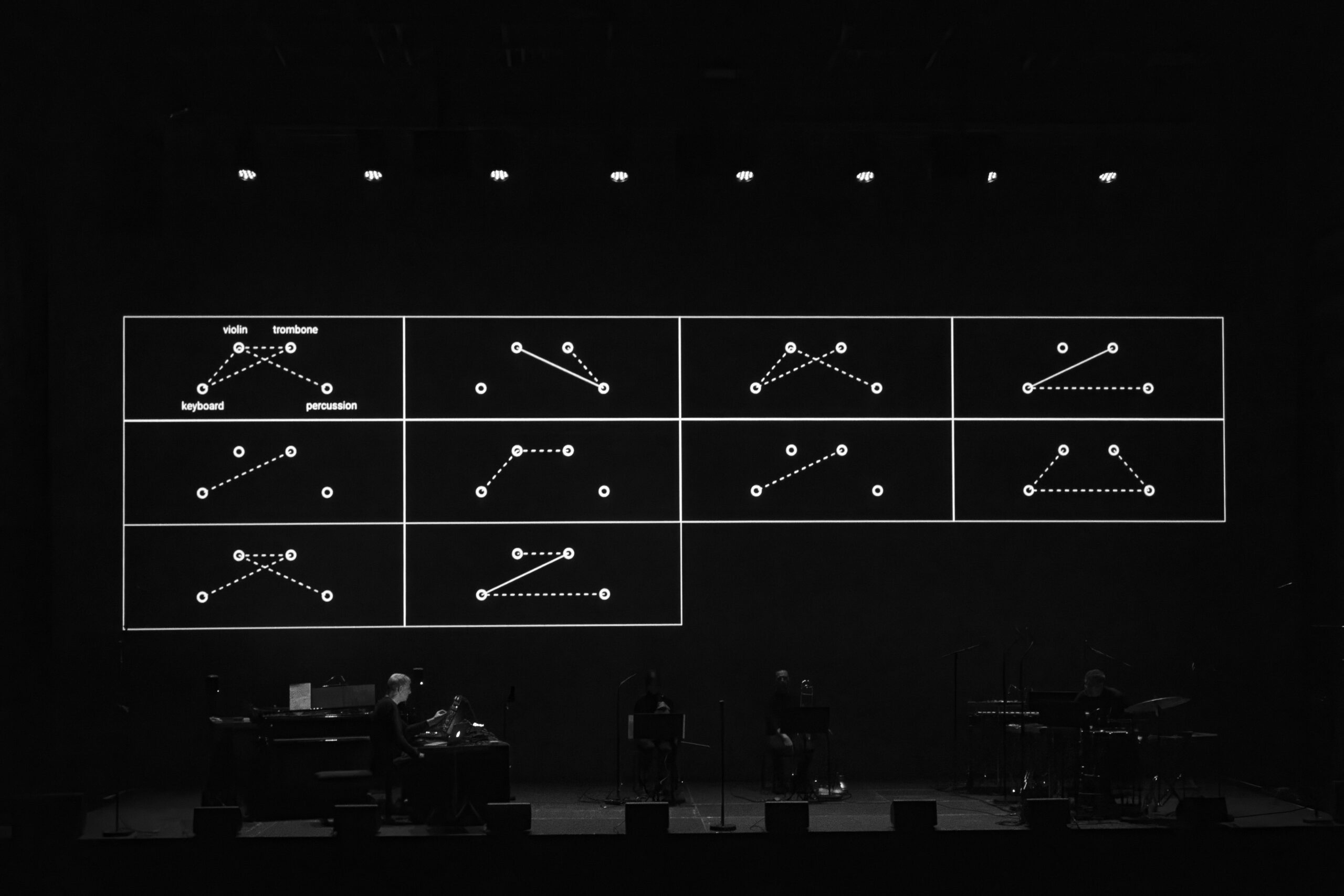 7 pièces pour audience, violon, trombone, claviers, percussions