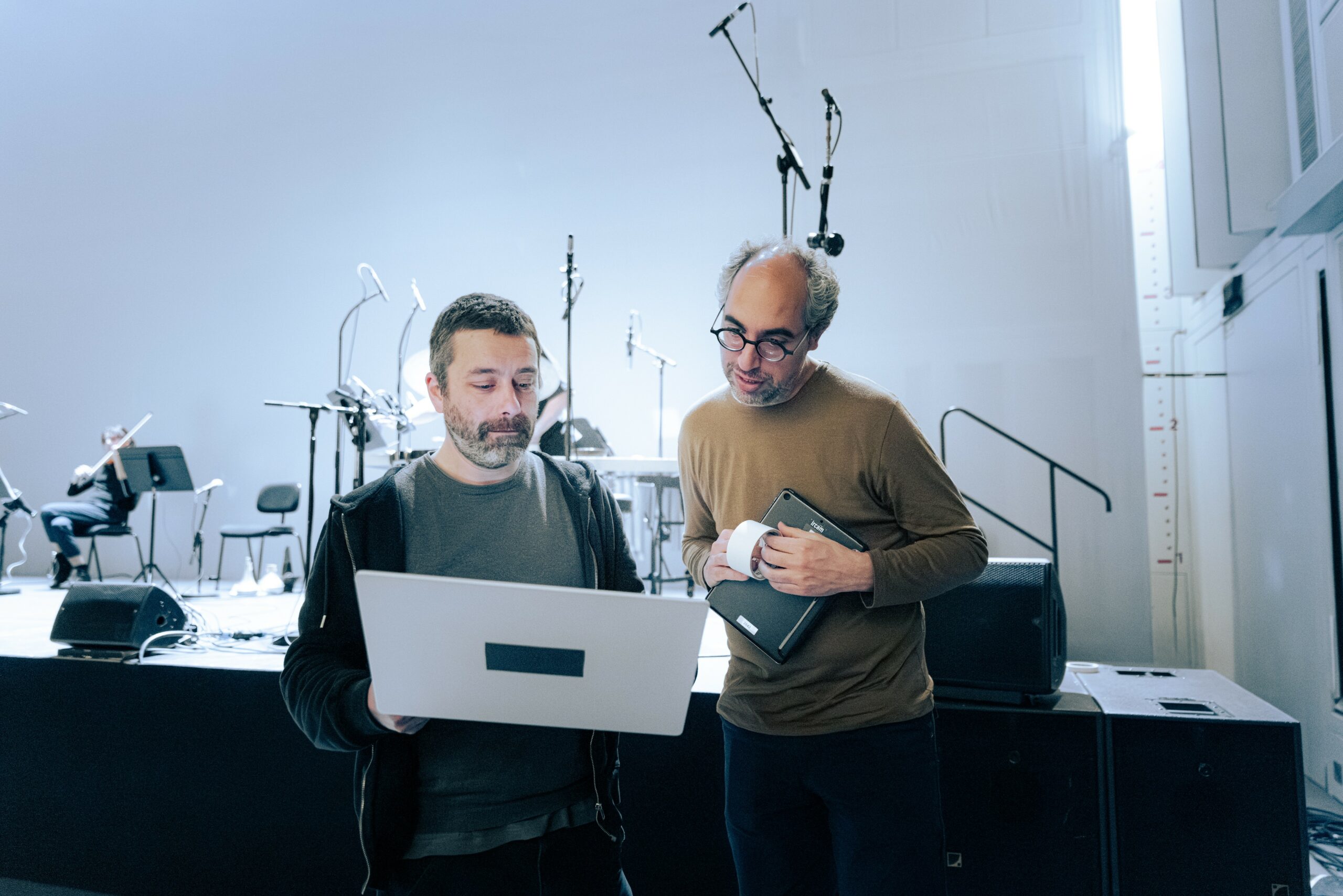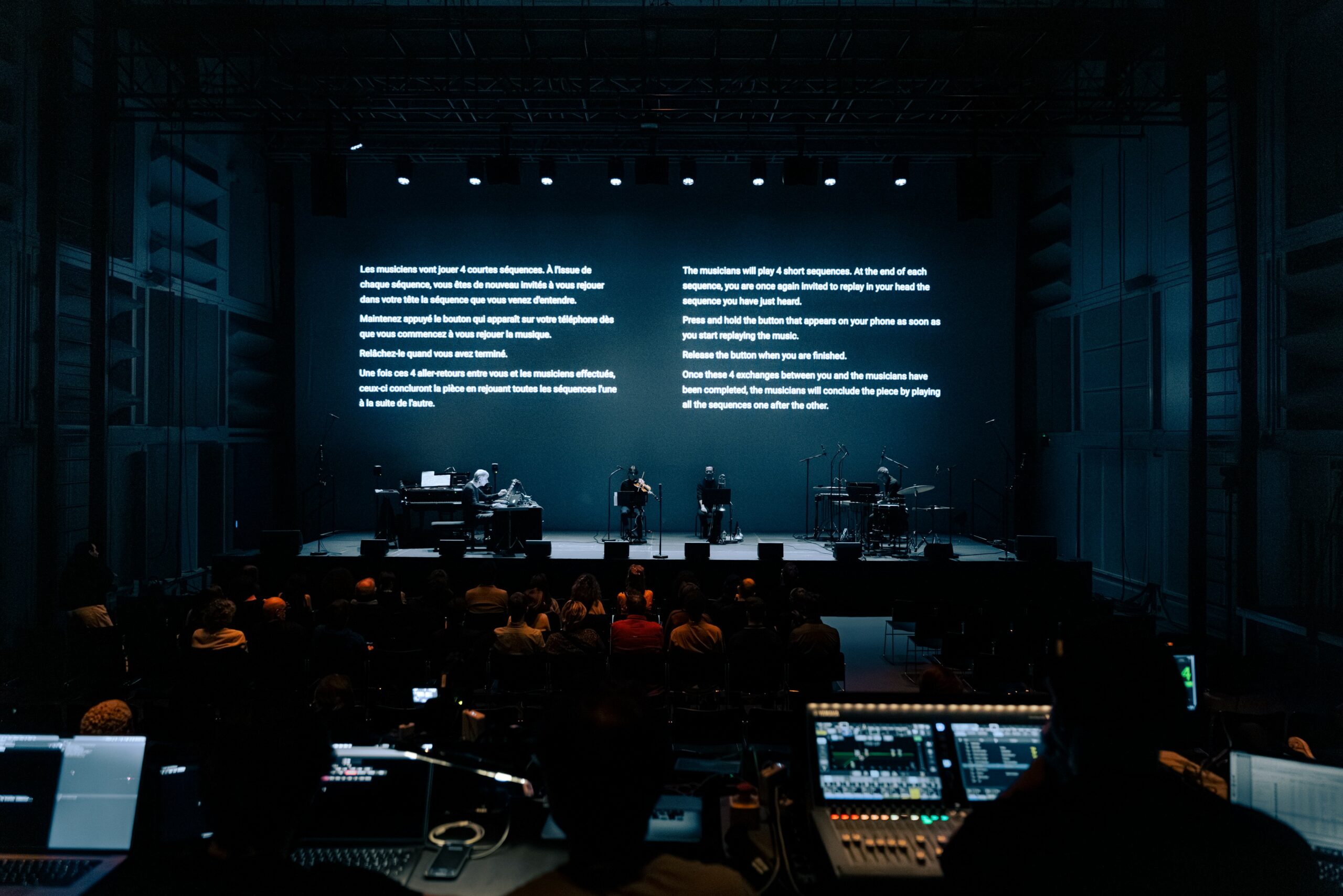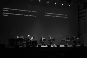 L’ensemble]h[iatus en quatuor dans une création de Sébastien Roux et Clément Canonne à l’IRCAM (Paris) le 18 mars 2026.